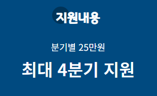 지원금액: 분기별 25만원 지급(최대 4분기 지원)