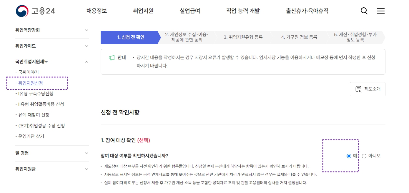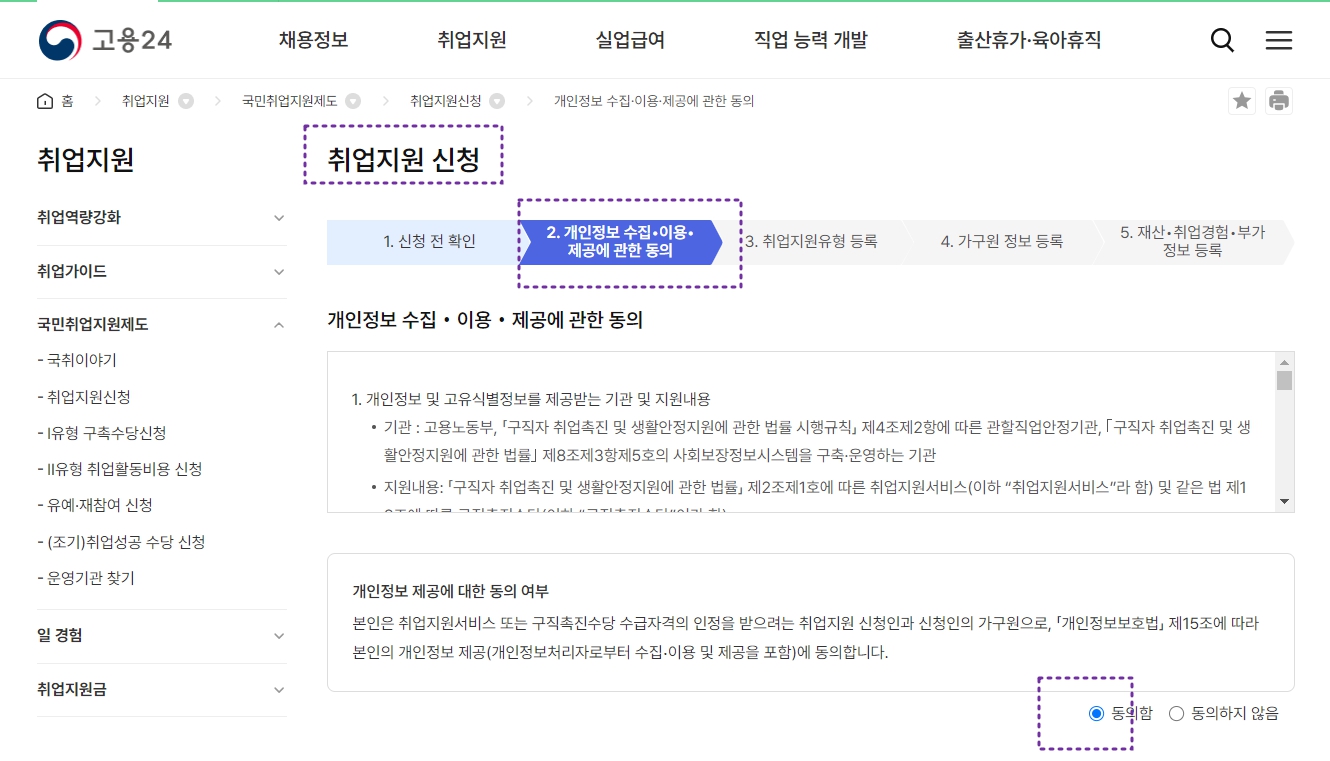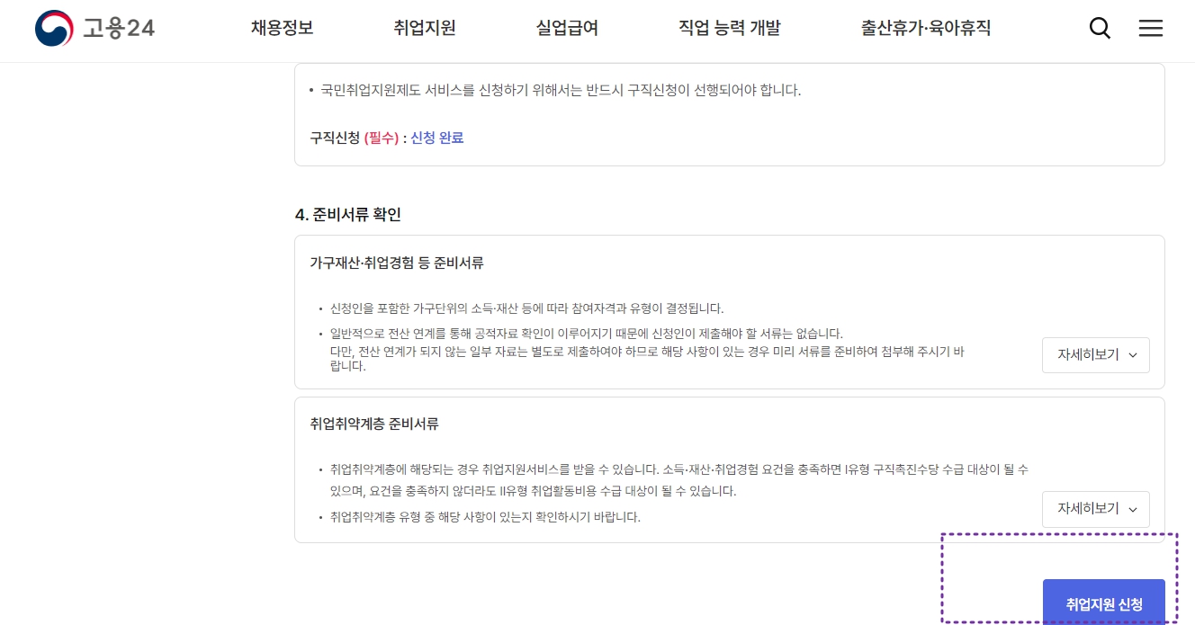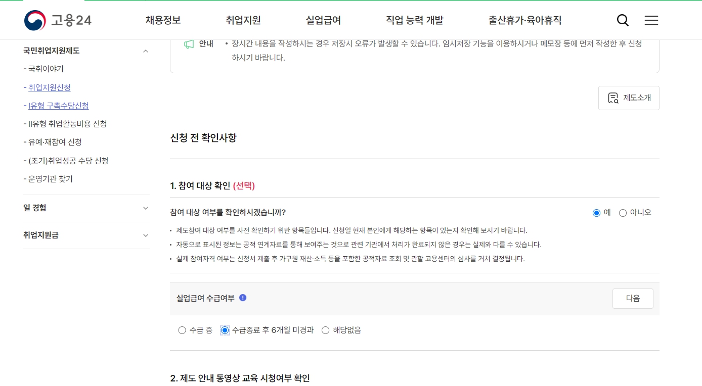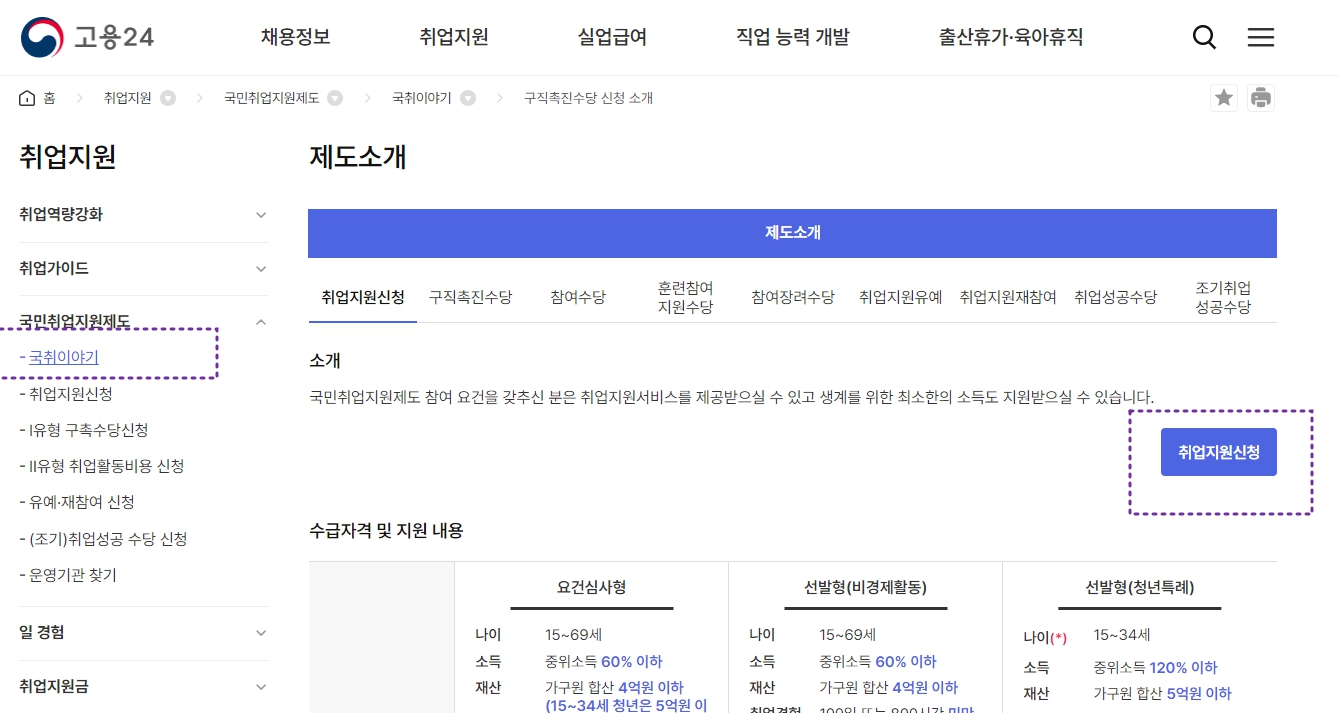 구직신청이 되어있어야 국민취업제도 신청할 수 있어요