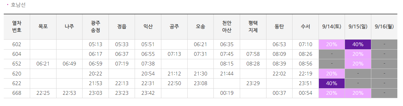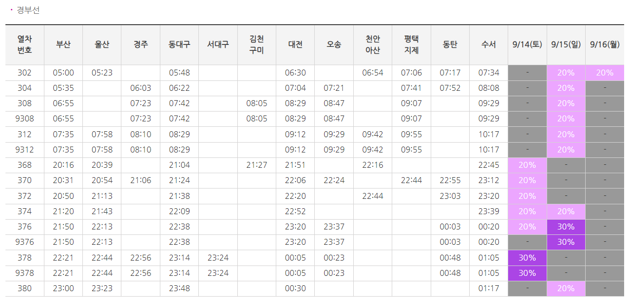 할인 대상 열차
