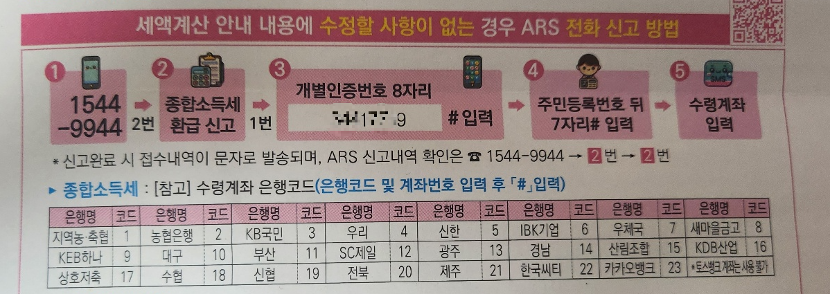안내문을 받은 납세자는 ARS 전화 1544-9944를 통해