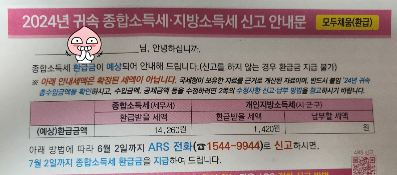 - 환급 대상자에게는 국세청에서 사전에 종합소득세를 계산해 안내문 발송