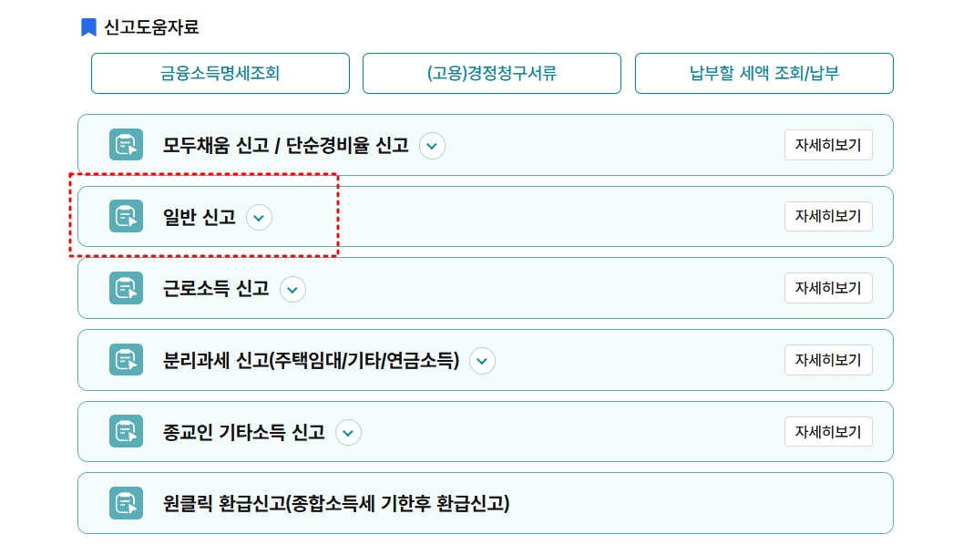 일반신고에서 정기신고로 들어가면 근로자, 사업자 등등 모두 한번에 신고 됩니다