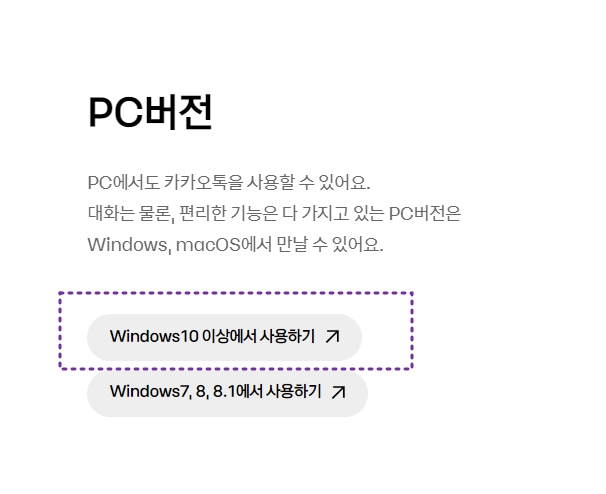 2. 운영체제에 맞는 카카오톡 버전 선택하기