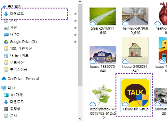보통은 내PC->다운로드 폴더에 저장되어 있을겁니다 kakaoTalk setup 더블클릭 해주세요
