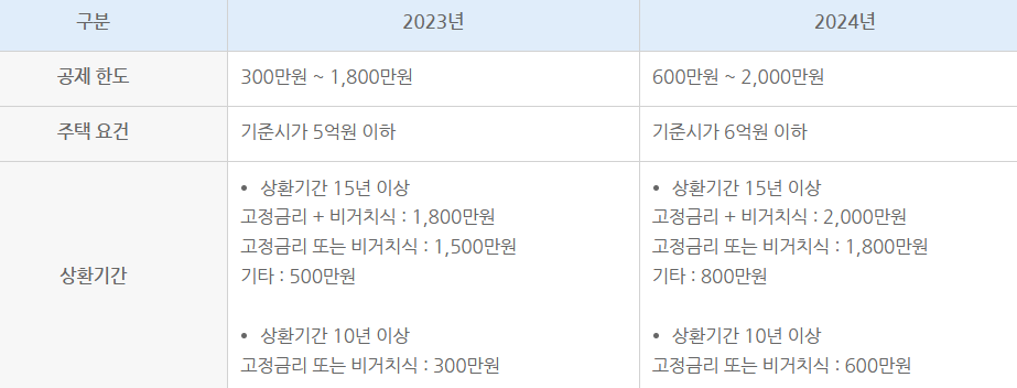 주택 저당 차입금 이자 공제 한도 상향